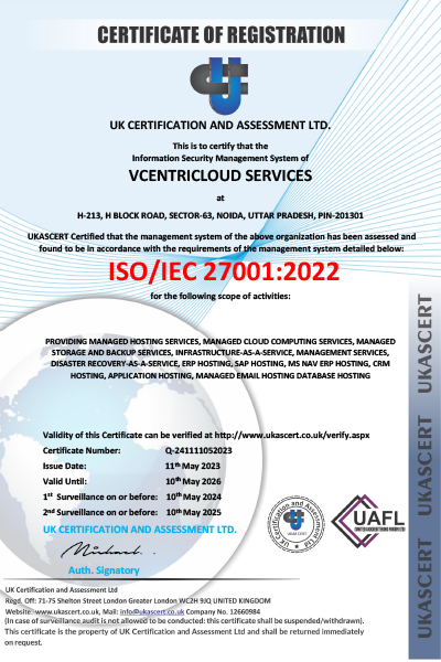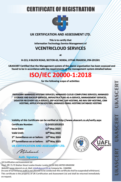 These compliances signify the ability of the business system to maintain quality processes and to deliver effective products and services. vCentriCloud proudly holds the two following compliances: